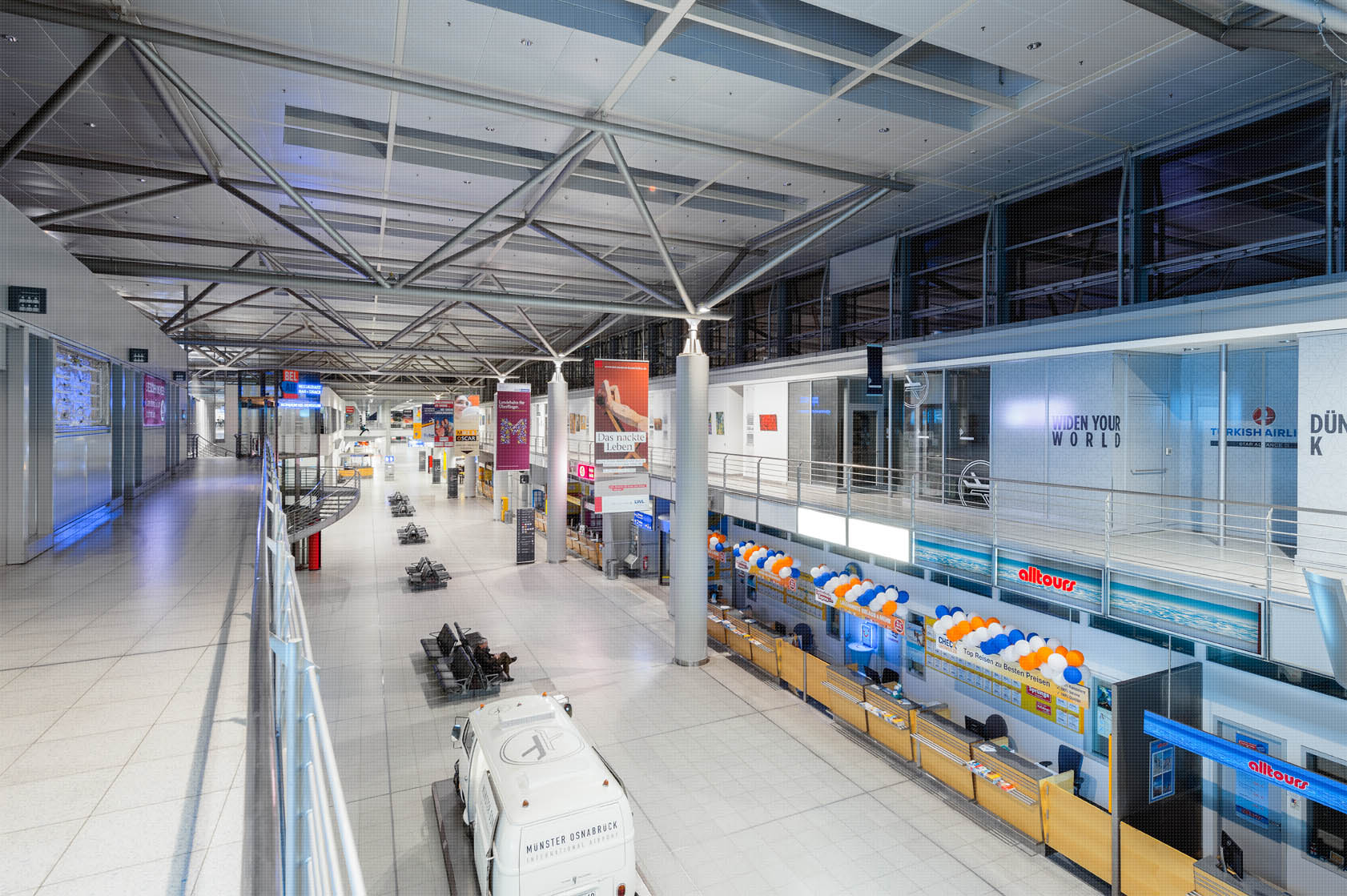 Der international angeflogene Flughafen FMO - Flughafen Münster / Osnabrück. Eigenetlich in Greven liegend, dient er den beiden Kreisstädten als Fluchtweg in die Welt. Paul Cezanne sagte thematisch zwar zur Fotografie einmal einen Satz, der aber zu diesem Obejkt auch leider sehr gut passt: "Man muß sich beeilen, wenn man etwas sehen will. Alles verschwindet."