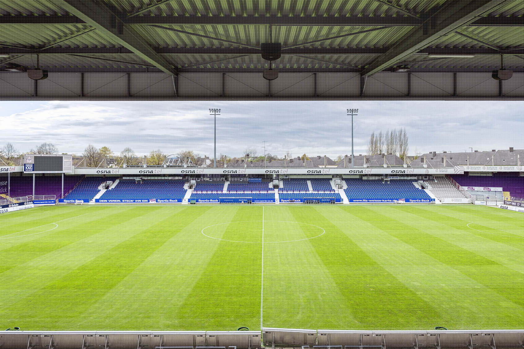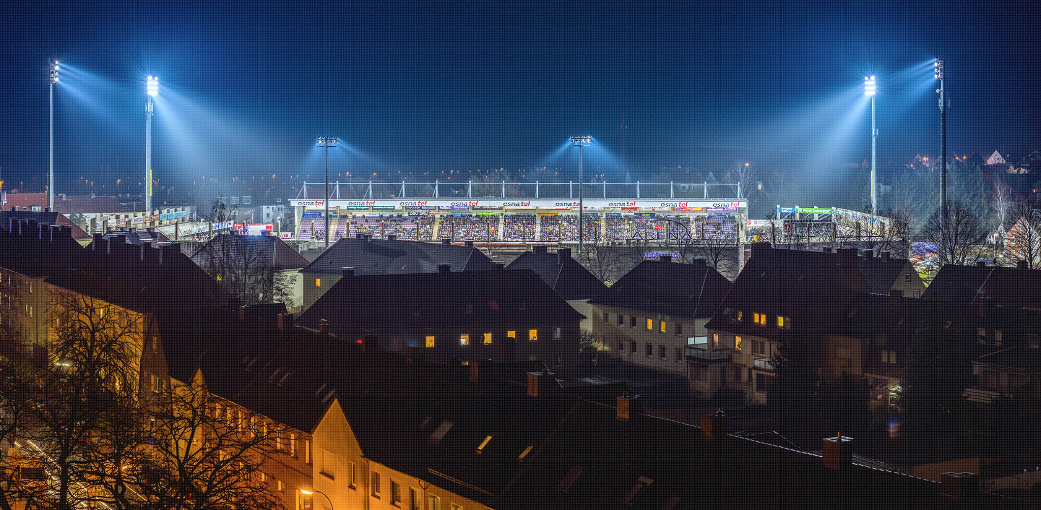 VfL. Osnabrück Stadion, "Bremer Brücke", im Schinkel umgeben von Wohnhäusern, angrenzend an die Gartlage. Es passt genau hinein.