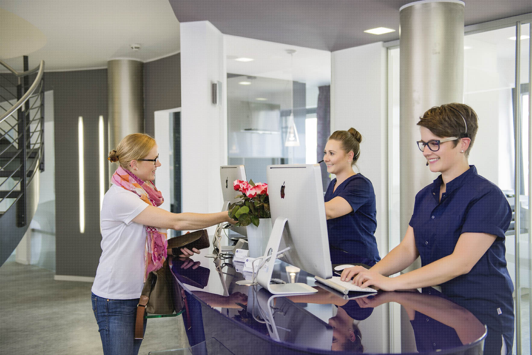 "Hell, sauber, freundlich, schlicht und einfach einladend. Herzlich willkommen in der Zahnarzt-Praxis."