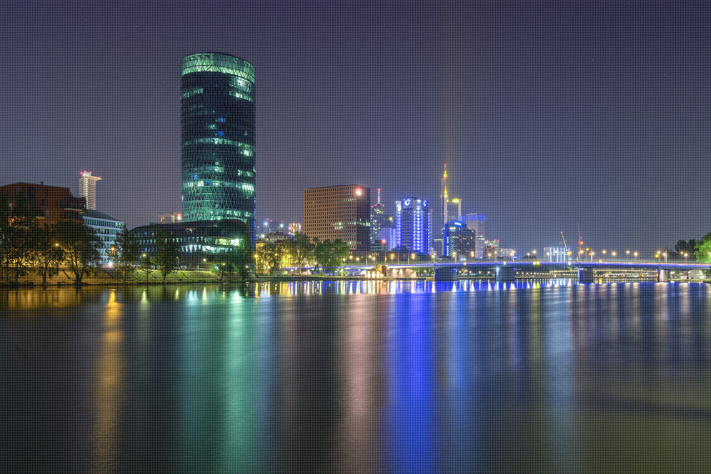 Wenn man sich in Frankfurt am Main nachts in Architekturfotografie übt, kann man durchaus alle Facetten dieser Art der Fotografie durchspielen und ausgiebig testen.Da ist für jedes Objektiv etwas dabei!